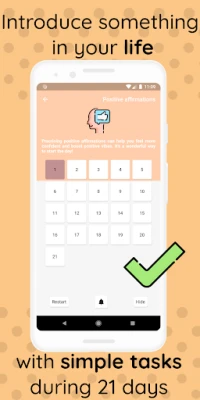 Khám phá "21 Days Challenge" để kiến tạo cuộc sống lý tưởng thông qua các thói quen tích cực. Chọn thử thách có sẵn hoặc tạo riêng bạn, duy trì trong 21 ngày để thấy sự thay đổi. Ứng dụng giúp bạn hình thành lối sống lành mạnh, tăng cường năng suất và phát triển bản thân.