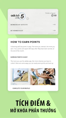 Đừng bỏ lỡ vô vàn ưu đãi độc quyền và các chương trình khuyến mãi hấp dẫn chỉ có trên ứng dụng adidas. Tận hưởng các sự kiện siêu sale lớn như Black Friday, 11.11, 12.12 và săn những mã giảm giá đặc biệt. Hơn thế nữa, khi tham gia adiClub, bạn sẽ mở khóa những đặc quyền thành viên giá trị như tích điểm cho mỗi lần mua sắm, miễn phí giao hàng và đổi trả, quyền truy cập sớm vào các sản phẩm mới nhất và những phần thưởng cao cấp được cá nhân hóa. Với adidas, bạn không chỉ mua sắm mà còn trải nghiệm một phong cách sống năng động và đầy cảm hứng. "You Got This."