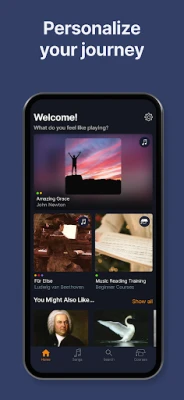 Chào mừng bạn đến với flowkey – người bạn đồng hành lý tưởng cho hành trình khám phá và chinh phục thế giới đàn piano. Ứng dụng flowkey mở ra một thư viện âm nhạc khổng lồ với hàng nghìn tác phẩm được biên soạn tỉ mỉ, trải dài mọi thể loại từ Cổ điển trang trọng, Pop sôi động, nhạc Phim & Truyền hình cảm xúc đến nhiều phong cách khác. Dù bạn mới bắt đầu hay đã thành thạo, flowkey luôn có những bản nhạc phù hợp với bốn cấp độ khó, đảm bảo bạn không ngừng được thử thách và tìm thấy niềm vui trong mỗi giai điệu. Hãy sẵn sàng để biến ước mơ chơi đàn thành hiện thực cùng flowkey!