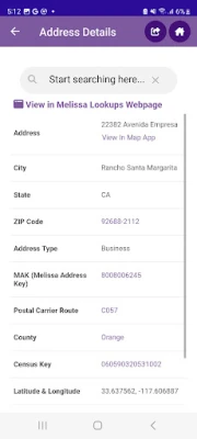 Kiểm tra và xác thực địa chỉ tại Hoa Kỳ hoặc Canada dễ dàng. Ứng dụng cung cấp thông tin chi tiết về bất động sản liên quan đến từng địa chỉ đã xác minh. Tra cứu nhanh chóng, chính xác mọi lúc.